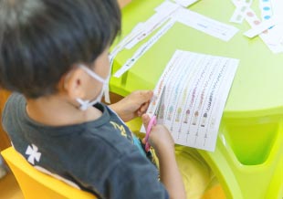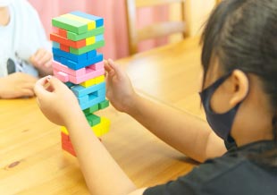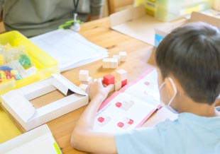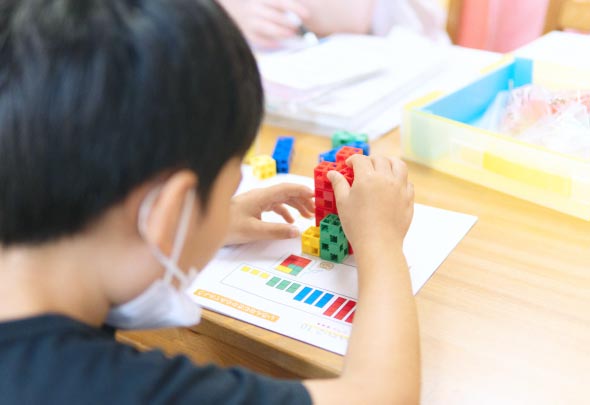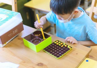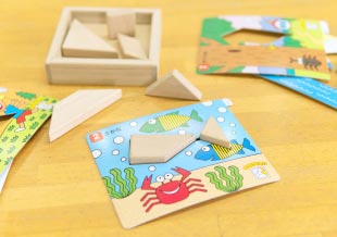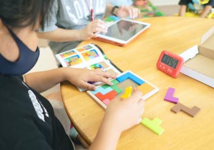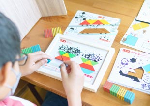 ブロックを規定の形にならべ、空間把握能力を養います。