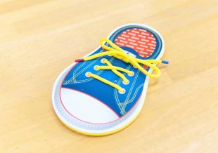 くつひもをチョウチョ結びできるように練習します。
