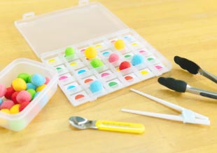 トング・スプーン・お箸を使って、ボールを規定の場所に移します。