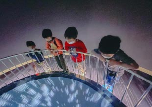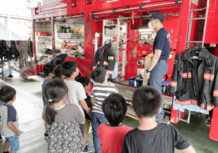 防災センターで火事や地震に対応する知識を学びます。